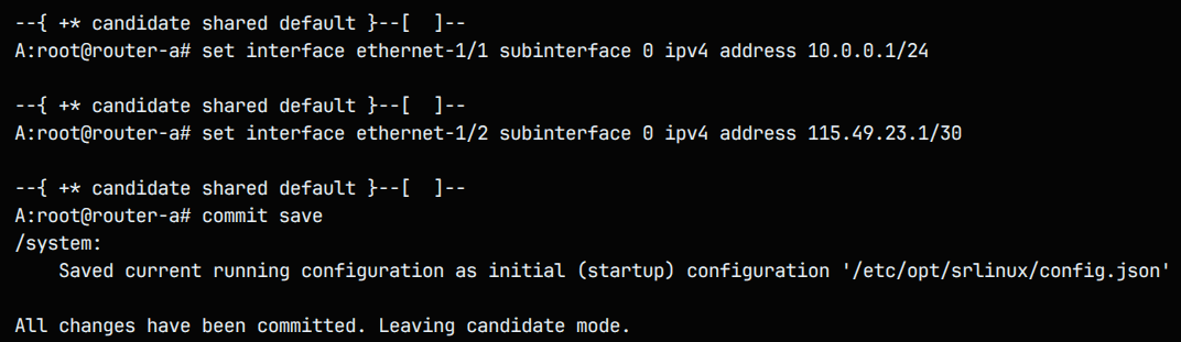 This is where Infrastructure as Code comes in handy. All of this configuration takes a big amount of time and it is very susceptible to human error (I made some myself). Another approach is to use ready-made configuration files that the router interprets and uses directly. In bigger companies and production environments, doing this manually across dozens or hundreds of routers and network devices is simply not realistic.