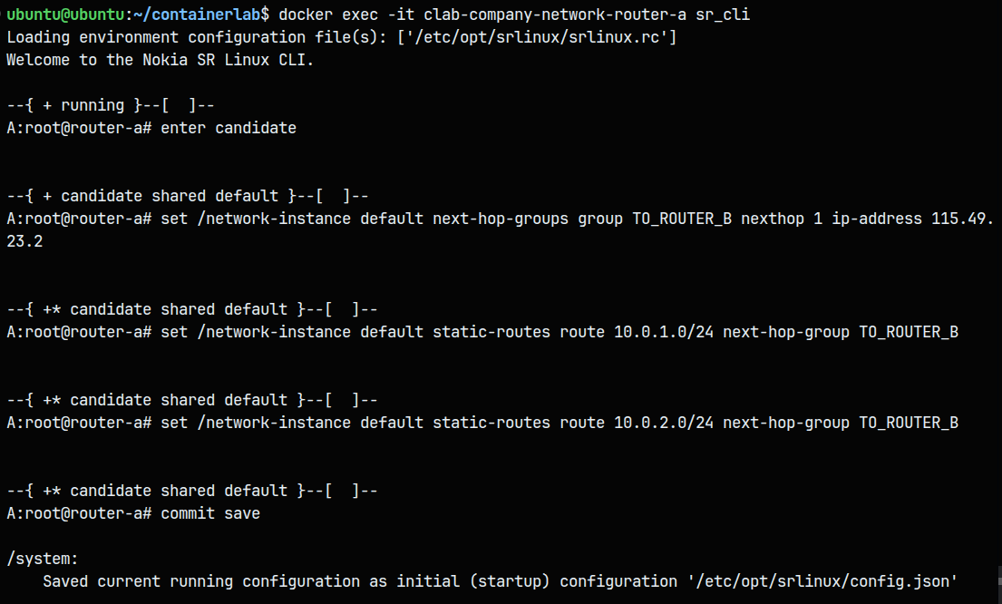 Key Insight: Connectivity must be deterministic. By explicitly defining static routes, we ensured that traffic flows only along authorized paths.