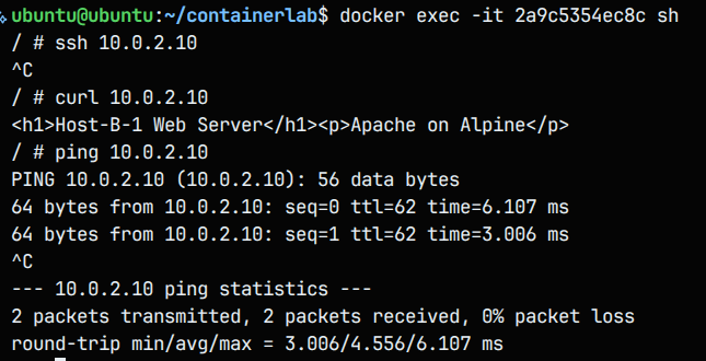 This lab goes beyond the mechanics of connecting containers; it highlights a fundamental transformation in modern networking. The exercise reflects the industry-wide transition toward software-defined infrastructure, where networks are no longer built device by device, but designed, validated, and deployed as cohesive systems. By replacing manual configuration with automation, we achieve networks that are faster to deploy, easier to audit, and significantly more reliable.