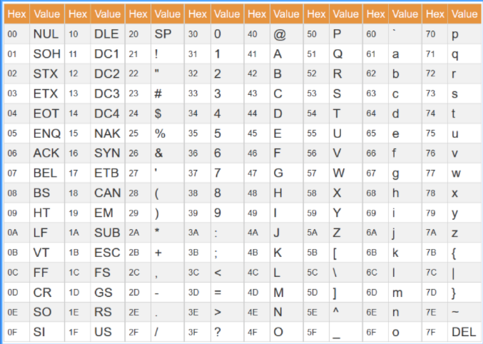Unprintable: 0x00 - 0x1F, 0x7F